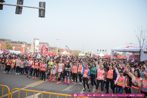 今年賽事現(xiàn)場最大的亮點在于,取消了開賽儀式,僅保留鳴槍一項流程。主會場起點區(qū)域沒有了大型噴繪的主席臺,取而代之的是小巧簡約的發(fā)令臺。上午7點,不間斷的熱身音樂響徹整個甜蜜小鎮(zhèn),運動員們在進(jìn)入賽道集結(jié)后,配合著音樂,跟隨著健身教練的指引一起熱身。上午8點30分,鳴槍嘉賓們準(zhǔn)時登臺鳴槍,全體3000多名跑者一起沖出起點門,化作一片粉紅色的海洋,向著終點奔去?!叭∠_賽儀式對跑者來說是非常貼心的一項舉措,讓我們在進(jìn)入賽道之后依然能夠繼續(xù)熱身,時間一到準(zhǔn)時開跑,整個參賽流程也更加流暢了。”參賽選手在賽事現(xiàn)場直言道,簡化起跑前的儀式流程,對于跑者來說是一種更好的參賽體驗。