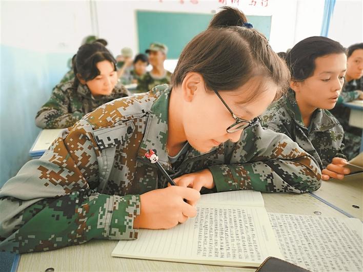 深喀一高學生身穿迷彩服在聚精會神上課。