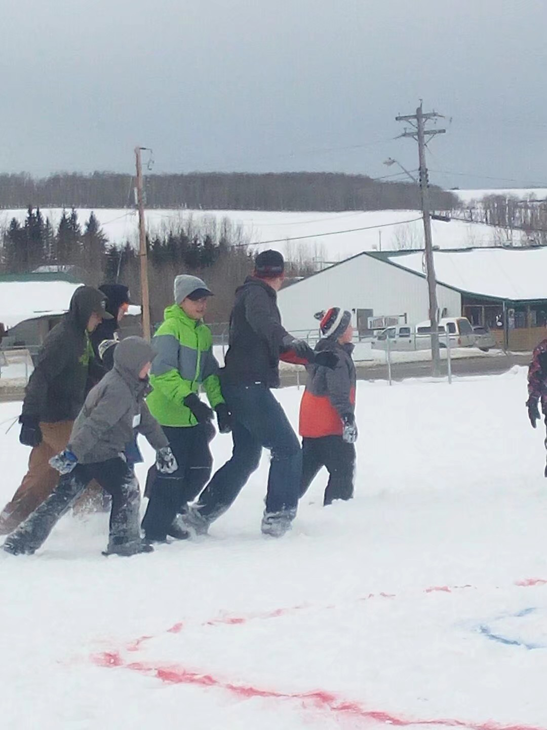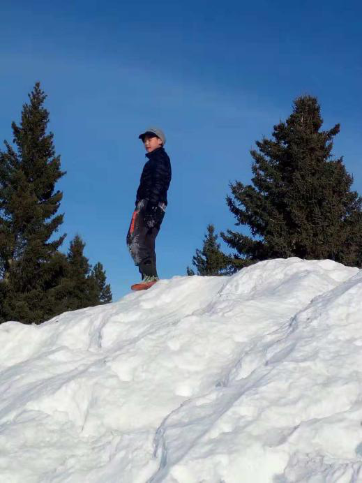 在學(xué)校,一望無際的操場上,雪丘一個比一個高,當(dāng)你站在雪丘的至高點,笨重的校巴就不再是那么大了。喜歡雪的同學(xué)們一點也不怕冷。他們在雪地里打球、摔跤、滑雪,還不時地會聽到尖叫聲,原來是同學(xué)相互在雪丘上推上推下,開心得不亦樂乎。