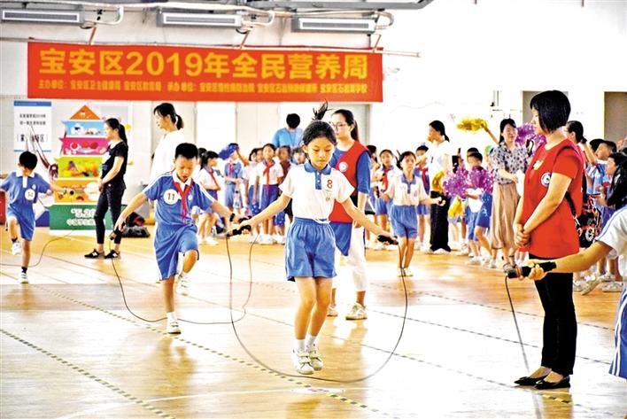 寶安日?qǐng)?bào)5月21日訊 你每天運(yùn)動(dòng)夠60分鐘了嗎?每天都有吃蔬菜水果嗎?如今,已有越來越多的人重視營養(yǎng)、運(yùn)動(dòng)與人體健康的關(guān)系,每年的5月20日是中國學(xué)生營養(yǎng)日,今年的主題是“營養(yǎng)+運(yùn)動(dòng),攜手護(hù)視力”。5月20日下午,寶安區(qū)2019年全民營養(yǎng)周暨“5·20”中國學(xué)生營養(yǎng)日在石巖湖學(xué)校舉行。
