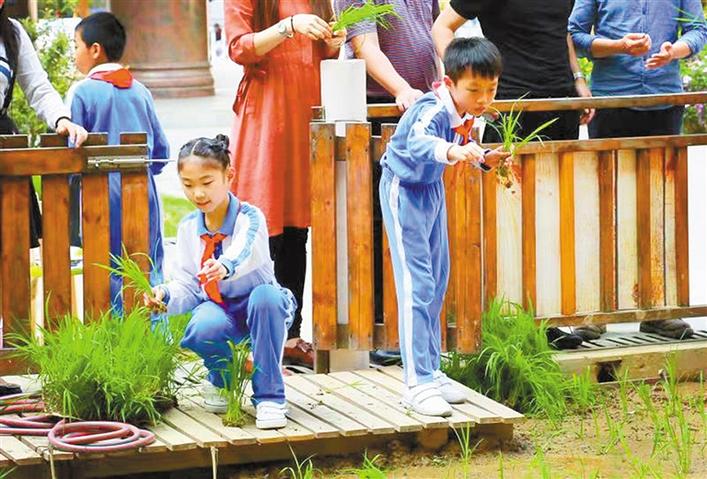 在“校園種水稻”這門校本課程的基礎(chǔ)上,學(xué)校又開拓了《觸摸春天》《稻田童話》《廢紙的美麗蛻變》《七彩園藝》《陶藝樂繽紛》《果香小鎮(zhèn)》等一系列校本課程。
