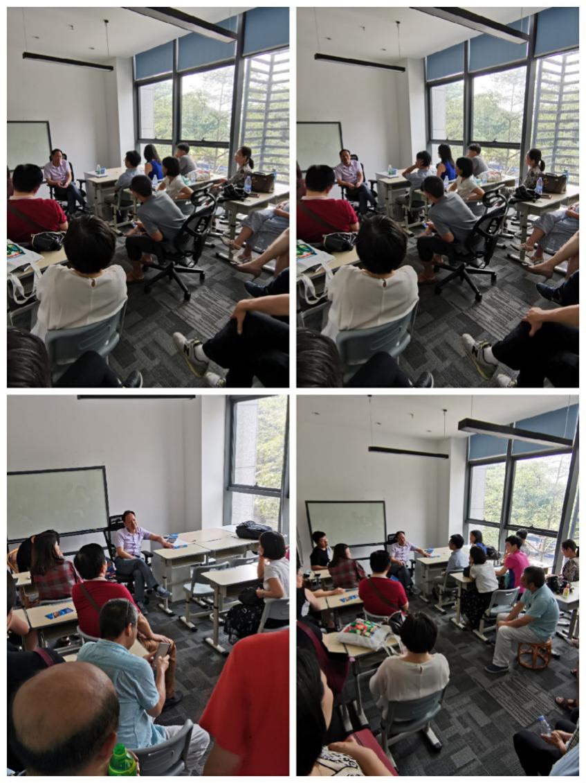 受畢莘教育的邀請(qǐng),朱全民老師和周楷文同學(xué)于當(dāng)日下午兩點(diǎn)來到公司繼續(xù)交流,朱老師以更近的距離與家長(zhǎng)進(jìn)行溝通,回答家長(zhǎng)們的提問。從家長(zhǎng)們關(guān)切的表情以及當(dāng)場(chǎng)輕松的氣氛不難看出,與國(guó)內(nèi)頂級(jí)名師的對(duì)話讓家長(zhǎng)們收獲頗豐;周楷文同學(xué)則主持一門以“字符串哈希和kmp算法”為主要內(nèi)容的公開課,近距離地帶來一些周同學(xué)獨(dú)家積累的實(shí)戰(zhàn)相關(guān)的參賽技巧演示,從孩子們認(rèn)真的臉上,反射出對(duì)信息學(xué)競(jìng)賽的愛好,對(duì)心中“學(xué)神”的“敬仰”。
