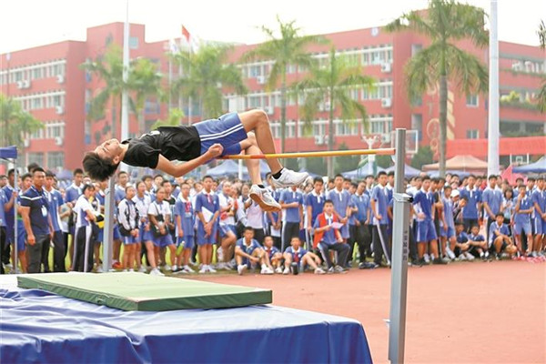 ▲沙井中學(xué)學(xué)生在第十四屆體育藝術(shù)節(jié)田徑運動會跳高比賽中表現(xiàn)精彩。