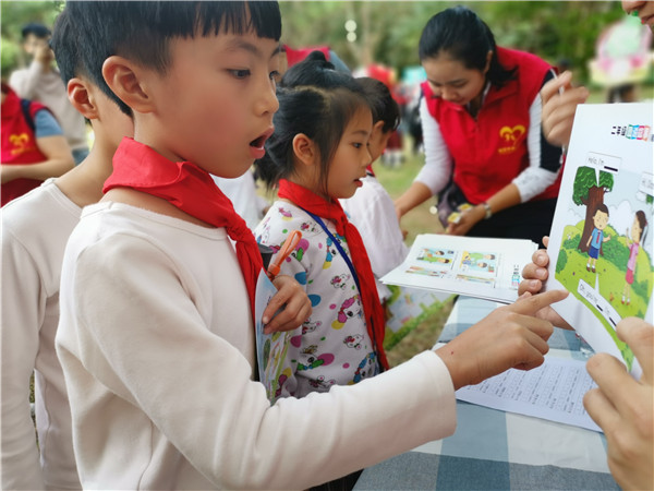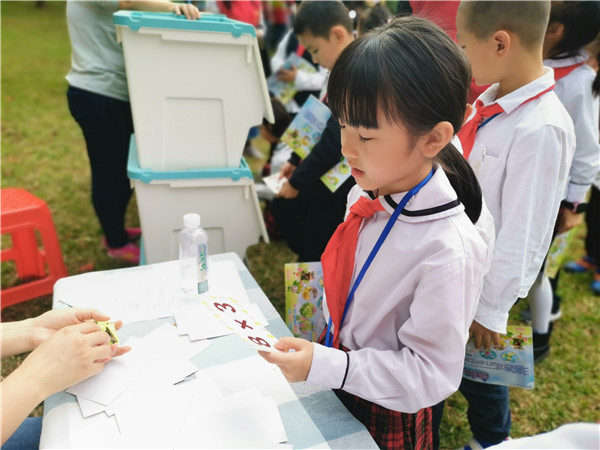 據(jù)悉,本次活動以闖關(guān)的形式,每年級各分10個關(guān)卡,每闖一關(guān)就獲得一個能量動物或者能量植物填補闖關(guān)卡的空白,各年級的學(xué)生需要在半小時內(nèi)將闖關(guān)卡的空白處填滿,才算闖關(guān)成功,獲得有校長贈言的書籍一本。關(guān)卡的設(shè)置以語文、數(shù)學(xué)和英語三個科別組成,其中,最受孩子們青睞的要數(shù)“筆架說話”這個關(guān)卡,孩子們把自己相像成筆架山的一員,然后介紹自己,有同學(xué)說:“我是筆架山的大樹,我可以給大家遮蔭,讓大家不用被太陽曬到?!?、“我是筆架山的石頭,孩子們來筆架山玩的時候,可以把我們拼在一起做拼圖?!?、“我想成為筆架山的暗綠繡眼鳥,就是嘴巴尖尖的,頭上綠綠的,眼睛邊上有點白色的那種,我要站在筆架山的枝頭上盡情歌唱,紅紅的火焰花為我做背景!”......孩子們通過豐富的相信力,盡情在老師與家長義工面前展現(xiàn)臨場的表達能力。