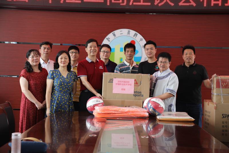 幫扶捐贈(zèng)儀式上,華強(qiáng)職校代表團(tuán)代表學(xué)校向環(huán)江職校捐贈(zèng)了7箱文體教學(xué)用品,有毛筆、宣紙,籃球、羽毛球拍、乒乓球拍等,價(jià)值2萬(wàn)多元人民幣,表達(dá)了華強(qiáng)職校對(duì)對(duì)口支教的兄弟學(xué)校的深情厚誼。