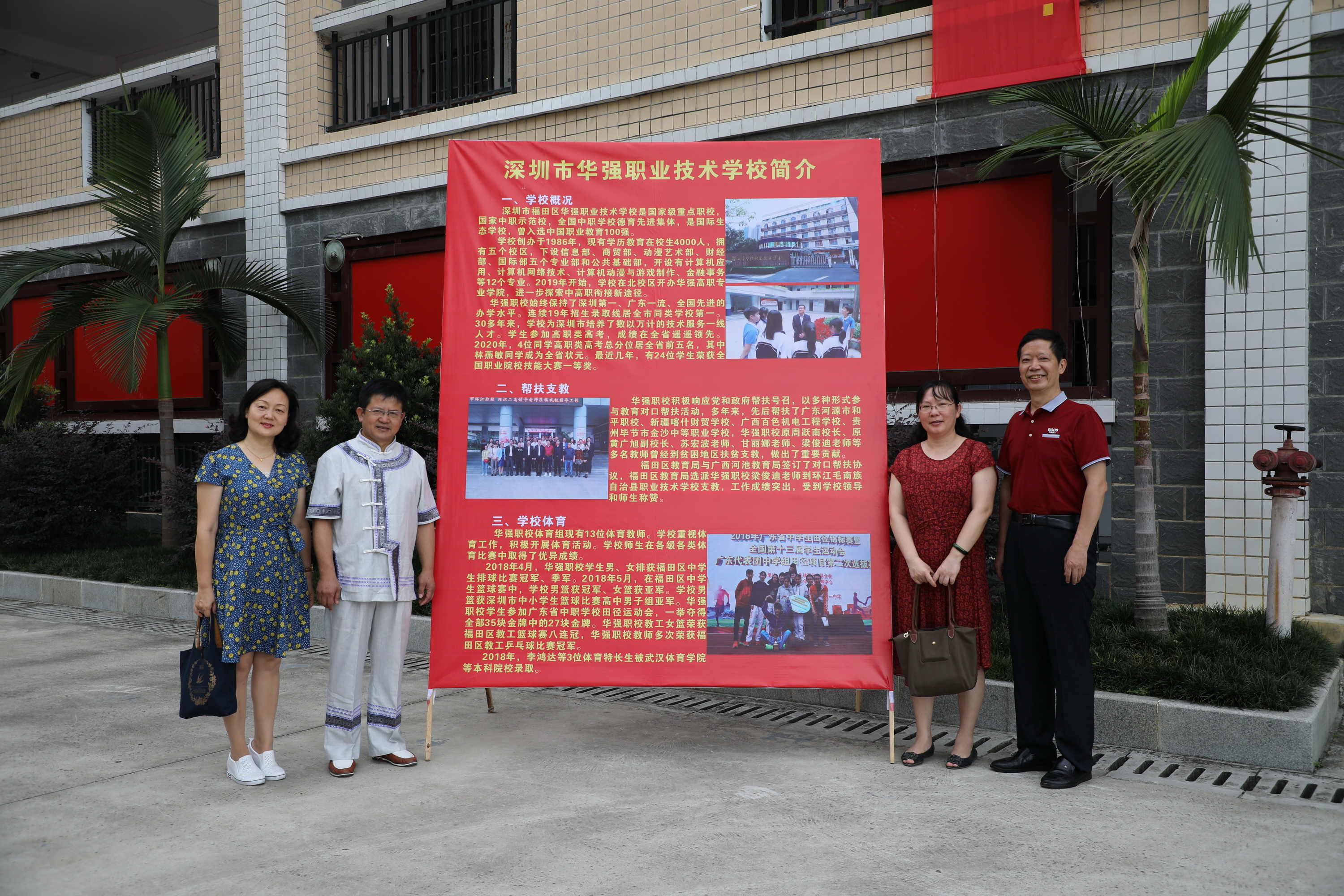 見(jiàn)圳客戶(hù)端·深圳新聞網(wǎng)2020年6月24日訊(記者 曹園芳 通訊員 李三平)近日,深圳市華強(qiáng)職業(yè)技術(shù)學(xué)校黨委會(huì)李三平副書(shū)記一行5人組成的代表團(tuán)受趙盟校長(zhǎng)委托,代表學(xué)校遠(yuǎn)赴千里以外的廣西環(huán)江毛南族自治縣看望學(xué)校支教老師,并送教到環(huán)江職校,開(kāi)展幫扶捐贈(zèng)活動(dòng)。代表團(tuán)成員有工會(huì)副主席楊玉華,辦公室副主任趙艷,教學(xué)處副主任岳元,工會(huì)委員、西校區(qū)副主任任志豪。