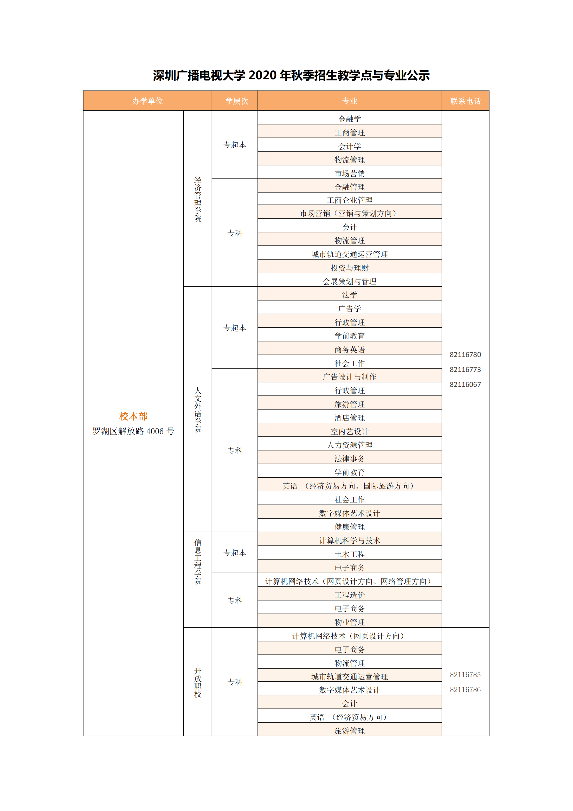 特別聲明:深圳廣播電視大學(xué)【國(guó)家開(kāi)放大學(xué)(深圳)】是唯一在深圳地區(qū)招收開(kāi)放教育??破瘘c(diǎn)本科、??茖W(xué)生的公辦高校。除學(xué)校公示的教學(xué)點(diǎn)外,其它任何以國(guó)家開(kāi)放大學(xué)或廣播電視大學(xué)名義在深圳市范圍內(nèi)招生的機(jī)構(gòu)和個(gè)人均屬違規(guī)招生,報(bào)讀者謹(jǐn)防受騙。監(jiān)督電話:0755-82116067。