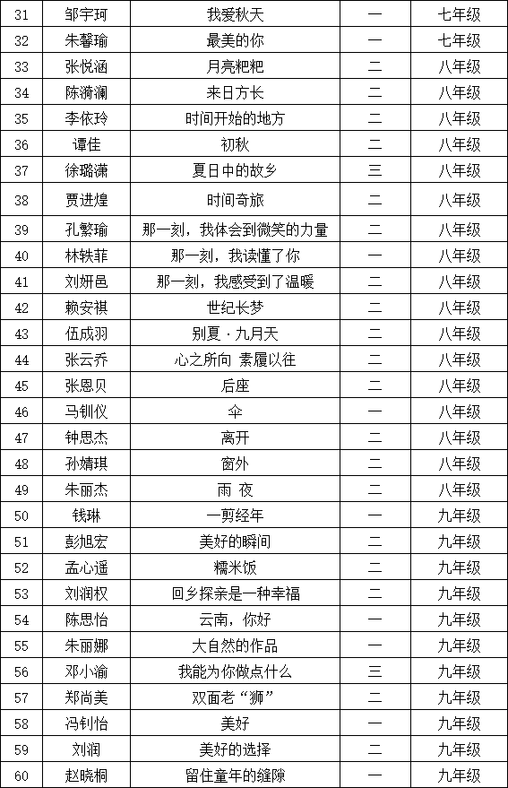 自2021年1月,活動(dòng)征稿啟動(dòng)以來(lái),獲得了深圳市廣大中小學(xué)生、教師、文學(xué)愛(ài)好者的熱烈響應(yīng)積極參與,吸引了深圳百余所學(xué)校的上萬(wàn)人關(guān)注報(bào)名?,F(xiàn)公布深圳市龍華區(qū)教科院附屬學(xué)校晉級(jí)復(fù)賽名單如下: