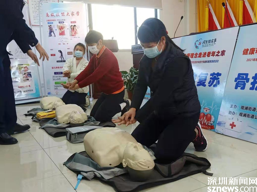 據(jù)了解,觀瀾街道有多家老年人之家、長者服務(wù)中心,為積極應(yīng)對人口老齡化,滿足轄區(qū)老年人對居家急救、居家健康知識的迫切需求,街道積極開展老年醫(yī)療保健和居家急救活動,如心肺復(fù)蘇急救體驗學(xué)習(xí)、骨折包扎體驗學(xué)習(xí)、防異物梗塞體驗學(xué)習(xí)等,使老年人充分了解到生活中一些突發(fā)事件的應(yīng)對方法,在保護自己的同時也能夠幫助到他人,為實現(xiàn)居民應(yīng)對“突發(fā)疾病”的自救奠定良好基礎(chǔ)。