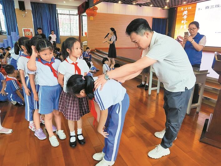 深圳市抗衰老研究會邀請專家史清泉醫(yī)生到景鵬小學(xué)開展脊柱健康公益活動,為學(xué)生進(jìn)行脊柱側(cè)彎篩查。