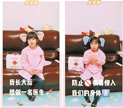 近日,深圳市梅林一村幼兒園小三巧虎班通過遠(yuǎn)程線上溝通互動,制定創(chuàng)意計劃,用錄制才藝小視頻、編創(chuàng)兒歌等方式,為奮戰(zhàn)在抗疫一線的醫(yī)護(hù)人員打氣助力,加油祝福。