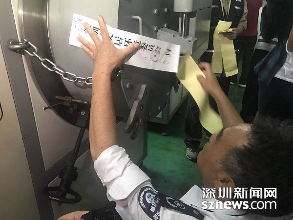 執(zhí)法人員對違法企業(yè)的設備進行查封