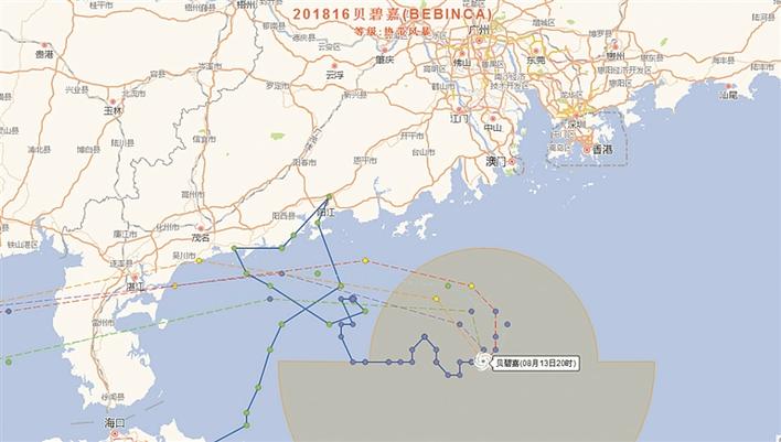 記者從深圳市氣象局獲悉,8月13日,今年第16號臺風被命名為“貝碧嘉”(熱帶風暴級),13日15時,其中心位于粵西近海海面,距離我市234公里,中心附近最大風力8級。13至14日繼續(xù)在粵西沿?;匦龜[動,強度略有增強,14日夜間到15日早晨將在我省西部沿海地區(qū)登陸。