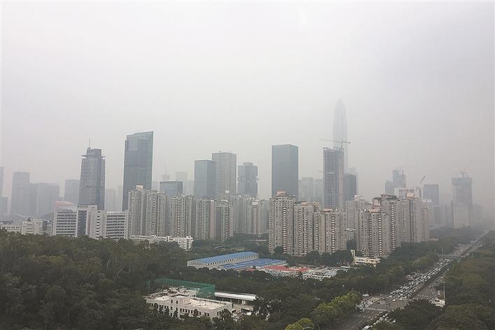 ▲深圳昨現(xiàn)灰霾天。 深圳晚報(bào) 見習(xí)記者 楊少昆 攝