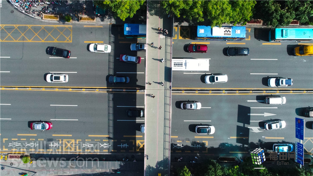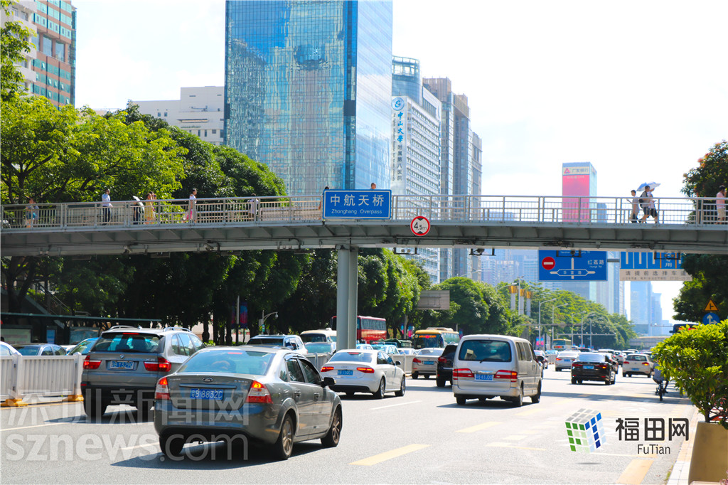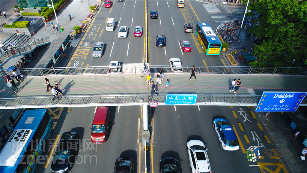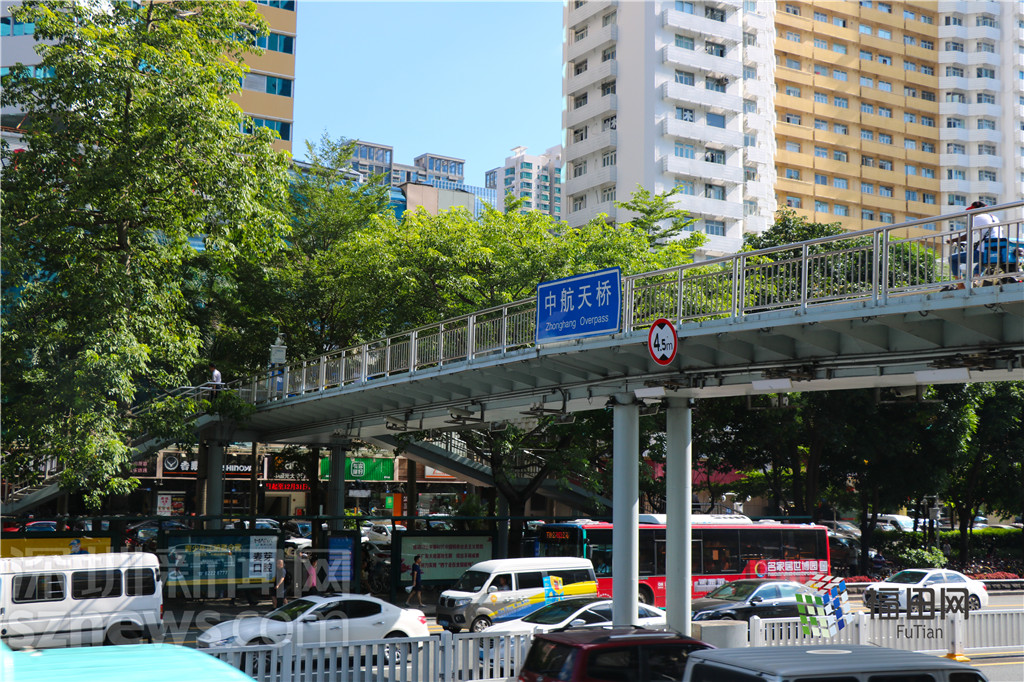 中航天橋位于深南大道上,是華強(qiáng)北過了中心公園后唯一一個比較標(biāo)志性的構(gòu)筑物