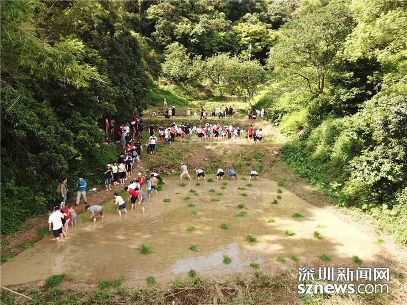 南嶺村每年都組織小朋友插秧,體驗(yàn)“鋤禾日當(dāng)午”的勞動艱辛(攝于2018年8月2日)