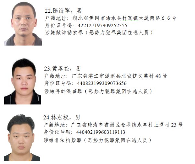 懸賞通緝!廣東這50名黑惡勢力嫌犯在逃