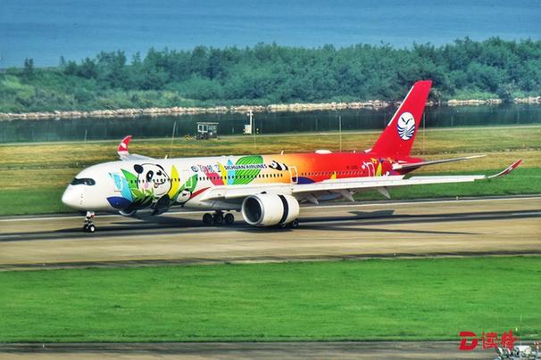 組圖:川航A350飛機首秀深圳 “熊貓彩繪”驚艷深圳機場