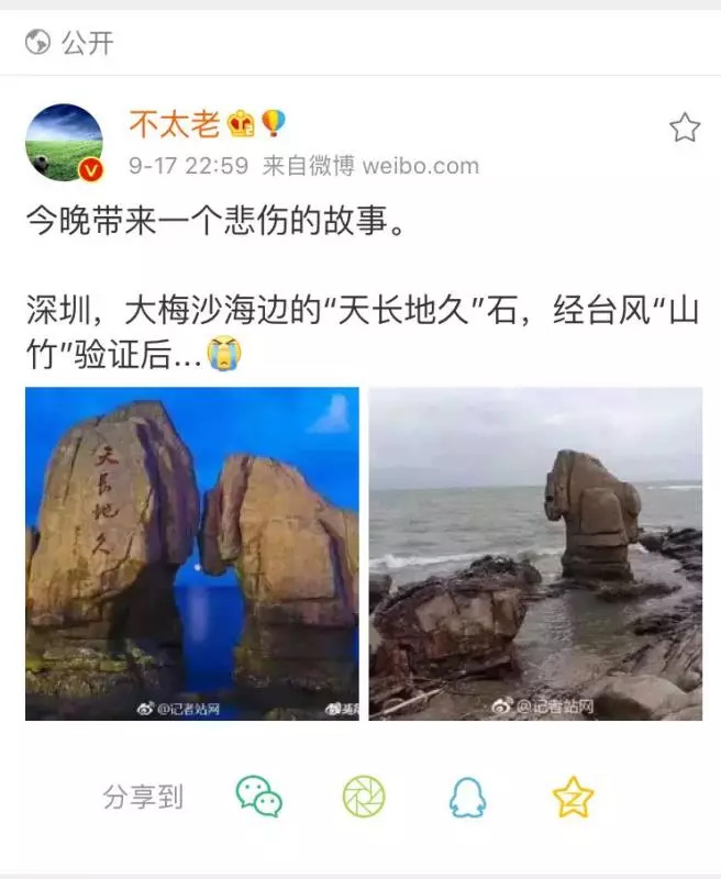 海未枯,石已爛!深圳大梅沙"天長地久"石,確實被吹倒了!