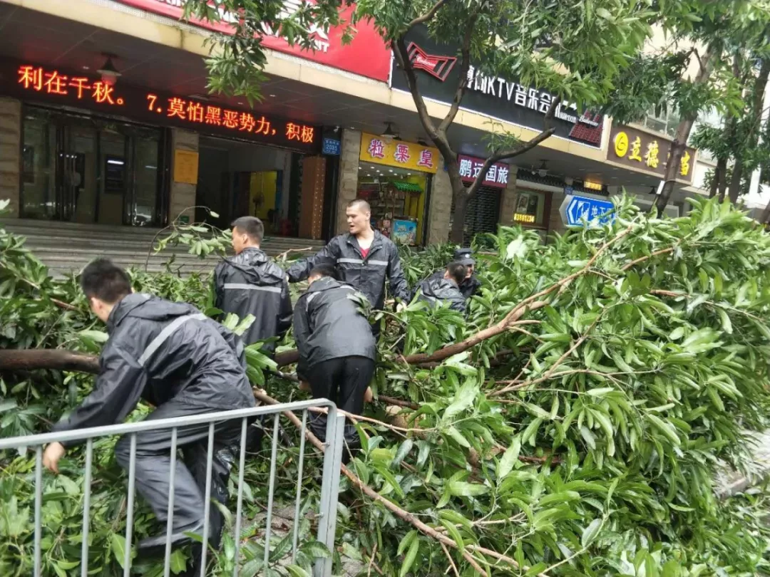 全市一片狼藉,樹木倒伏、圍墻坍塌、