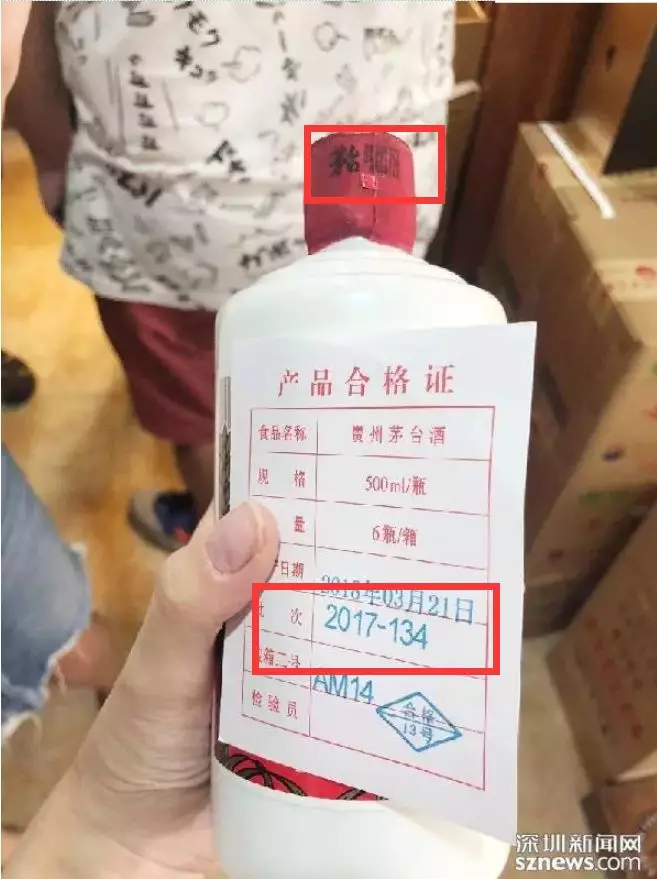 執(zhí)法人員支招,從以下方法入手:一般每箱茅臺都有對應的產(chǎn)品合格證,合格證上有相關批次數(shù)字,如果合格證上的批次數(shù)字與茅臺開口處所寫的批次一樣的話,為真茅臺概率很高。如圖,合格證和茅臺瓶口的數(shù)字皆為2017-134,為真酒,市民可放心飲用。