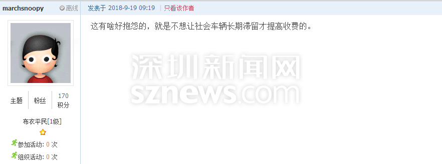 深圳新聞網(wǎng)9月21日訊(記者 施冰冰)“北站停車三天收費412元,這不是暴利嘛?!”近日,深圳一網(wǎng)友發(fā)帖吐槽深圳北站的收費標準,他認為深圳市中心的商業(yè)寫字樓一天封頂也不過60元,高鐵站社會停車場作為老百姓的公共交通基礎(chǔ)設(shè)施,憑什么比市中心的商業(yè)寫字樓還貴2倍多?(帖文:《 北站社會停車場作為老白姓的公共交通基礎(chǔ)設(shè)施,憑什么比市中心的商業(yè)寫字樓還貴2倍多》)