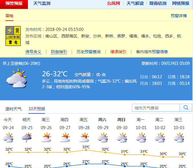 9月24日05:15分,深圳市氣象臺(tái)發(fā)布雷電黃色預(yù)警信號(hào)