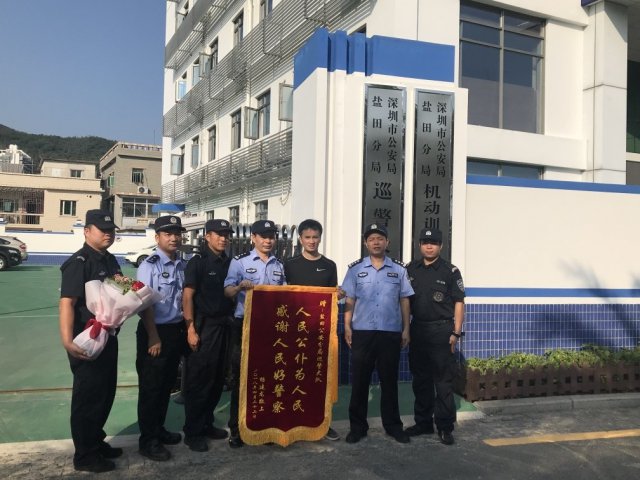 "我到這兒來就是為了感謝當(dāng)時的救命之恩!"9月21日下午,一名男子來到深圳市公安局鹽田分局巡警大隊,手捧一面繡著"人民公仆為人民,感謝人民好警察"的錦旗,撲通一聲跪下,激動得淚流滿面。在場民警趕緊攙扶起該男子,有人認(rèn)出這位來訪男子正是今年上半年因傷被大隊民警援救的楊先生。