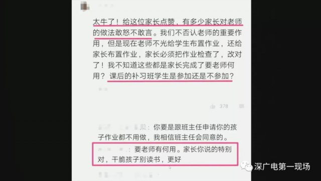 有市民就表示,自己勞累一天,還要擔負學生的作業(yè)檢查工作,其實就是替老師工作;有些老師給出的布置的作業(yè)題目過于偏門,導致家長認為老師是在有意刁難;還有些學校的老師還讓家長們輪值看護孩子們午休,這對于每天要工作的家長們而言更是天方夜譚了等等。