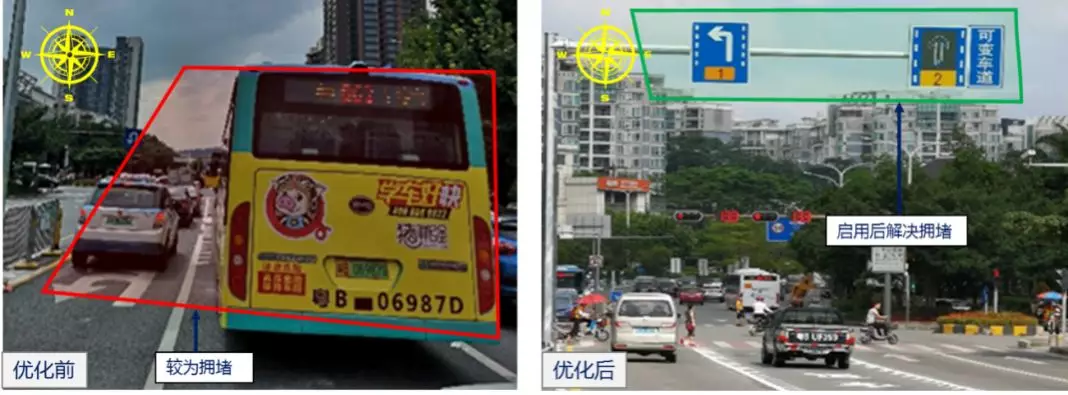 2.龍翔大道/吉祥路口啟用可變車道,相關(guān)路口平均周期減少約10秒 為解決龍翔大道/吉祥路口擁堵問(wèn)題,深圳交警對(duì)龍翔大道/龍城大道、龍翔大道/建設(shè)、龍翔大道/吉祥、龍翔大道/如意等4個(gè)路口實(shí)施可變車道及燈控掉頭口綜合管控措施,緩解上述路口平峰與高峰之間存在的分時(shí)段排隊(duì)不均、掉頭車輛與過(guò)街行人交織隱患問(wèn)題,優(yōu)化措施實(shí)施后,相關(guān)路口的平均周期減少約10秒。 龍翔大道/吉祥路口南進(jìn)口可變車道運(yùn)行情況點(diǎn)贊