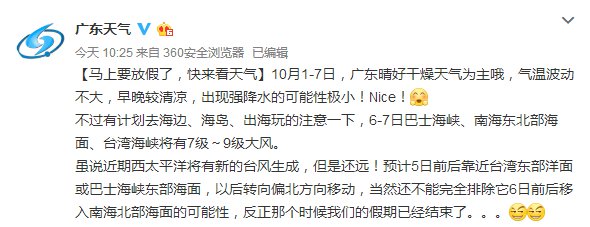 廣東國(guó)慶期間天氣不錯(cuò)!
