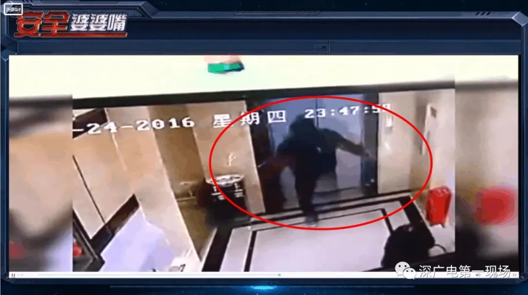 這名男子也是從遠(yuǎn)處飛奔向電梯一腳就踹開了廂門,然后不小心踏空掉下了電梯井。