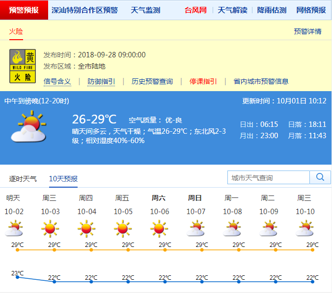 深圳新聞網(wǎng)訊 市氣象臺預(yù)測,國慶假期,深圳天氣平穩(wěn),大致晴朗干燥,氣溫波動不大,但火險氣象風(fēng)險高,需注意森林防火和家居用火安全,早晚沿海和高地易出現(xiàn)6-7級陣風(fēng)。