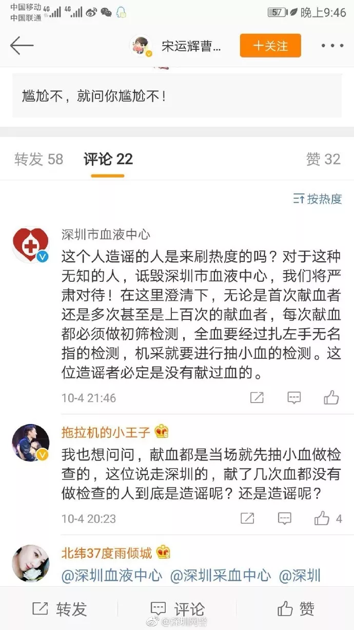 @深圳血液中心回應(yīng):用詆毀方式刷熱度