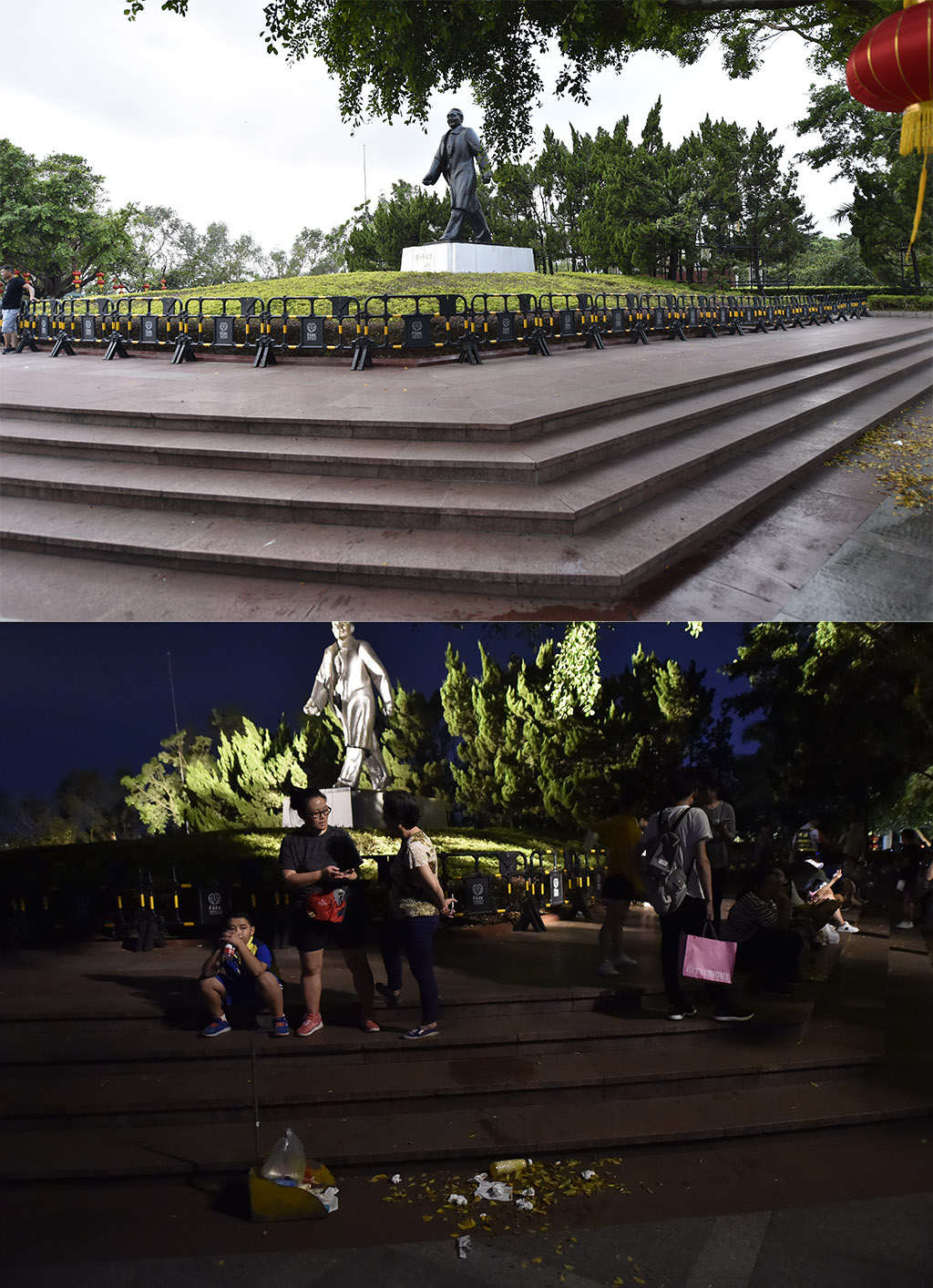 鄧小平雕塑右側(cè),燈光秀結(jié)束后垃圾迅速被責(zé)任環(huán)衛(wèi)工人清掃