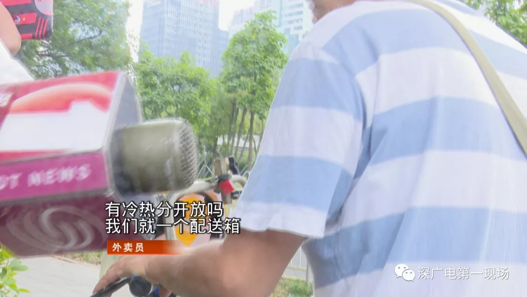 隨后送來的三份外賣里,冷飲和飯菜同樣是混合放在一個外賣箱中一起送過來。大部分外賣員反映,外賣箱沒有明確區(qū)分冷藏和熱藏區(qū)成了最大問題,對于商家統(tǒng)一打包的冷飲和熱飯菜,他們大多也都不會主動去分開運送。