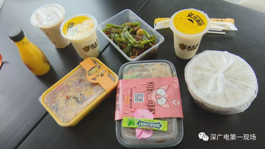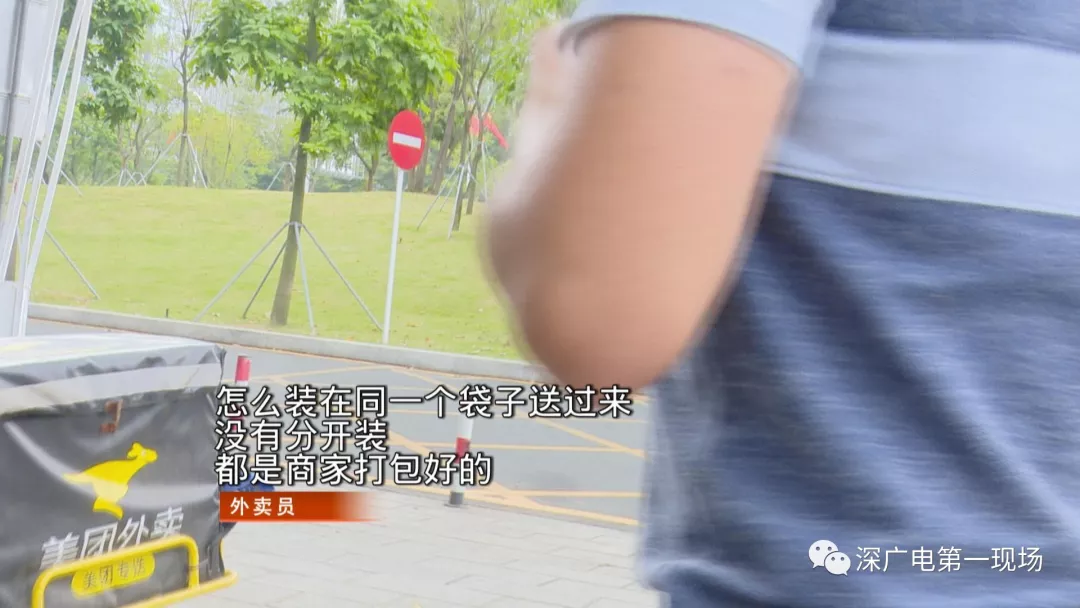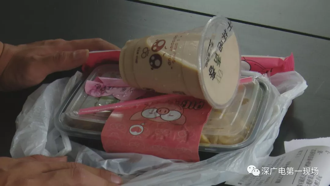 今天中午,記者從外賣平臺(tái)上隨機(jī)選取了幾家餐廳,分別購買了四份外賣,并配了冷飲。不過第一份外賣送上門,記者就發(fā)現(xiàn)冷飲與熱菜被裝在了同一個(gè)袋子中。
