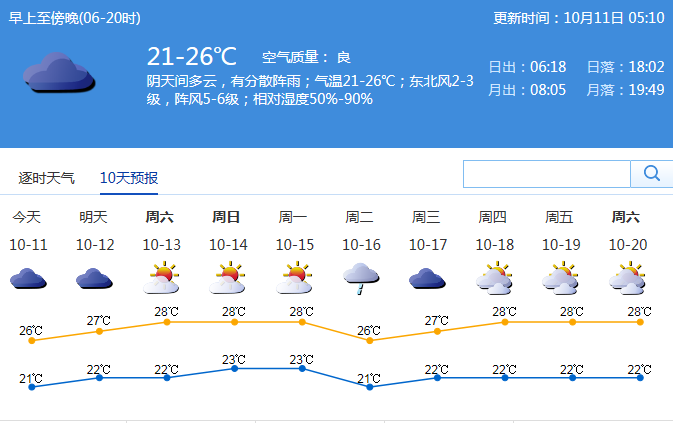 受弱冷空氣影響,預(yù)計11~12日有分散小雨,其中11日氣溫20 ℃ ~27 ℃。12日持續(xù)陰天,有分散陣雨,氣溫21 ℃ ~27 ℃。預(yù)計此次弱冷空氣影響持續(xù)到周末,13~15日晴天到多云,氣溫開始回升。16日將有新一輪冷空氣進(jìn)入深圳,有一次降雨過程。