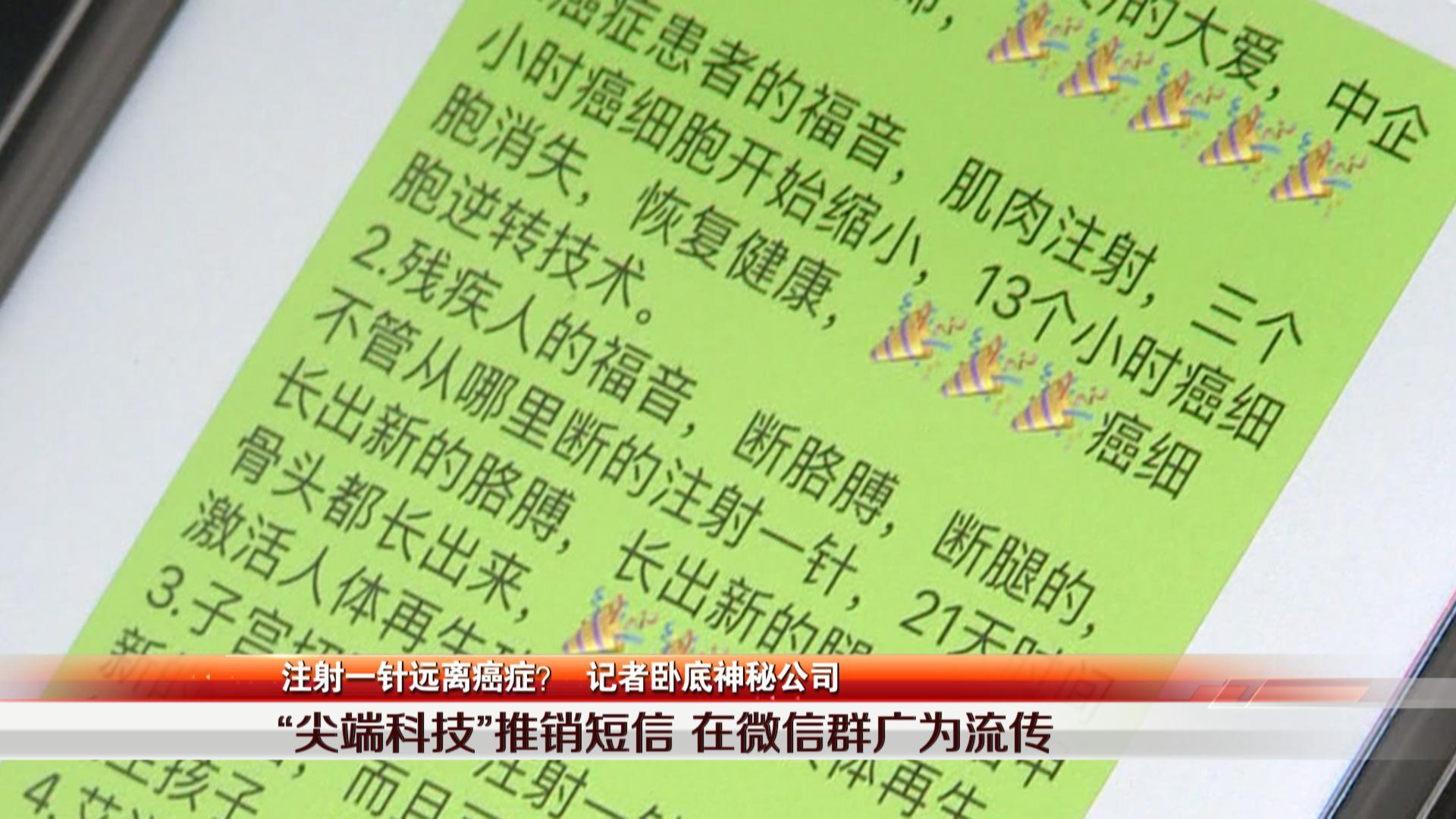 “先機(jī),先機(jī),改變?nèi)祟惷\(yùn)的生物科技”,這條號(hào)稱改變患者命運(yùn)的短信在一些微信群里流轉(zhuǎn),短信內(nèi)容號(hào)稱只要打一針,就能治愈身體上所有的疾病,其中包括癌癥、肢體再生、子宮再生、糖尿病、青春逆轉(zhuǎn)等,還呼吁將短信轉(zhuǎn)給有需要的患者,并表示向全國(guó)招募合伙人。