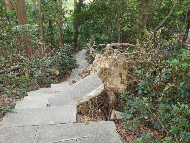 仙湖植物園內(nèi)被“山竹”吹倒的電線桿 圖片來(lái)自深圳論壇網(wǎng)友“szwtyh”攝