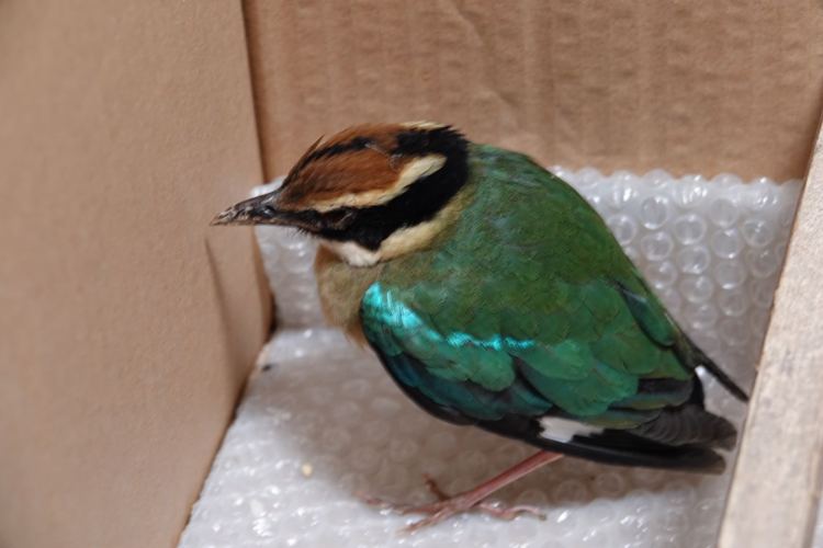 野保人員將仙八色鶇放進(jìn)了專用的紙箱中,帶回野保站。據(jù)介紹,該小鳥送到野保站后,工作人員將會(huì)檢查其身體狀況,視其身體狀況進(jìn)行救助喂養(yǎng),并在合適的時(shí)候放歸大自然。