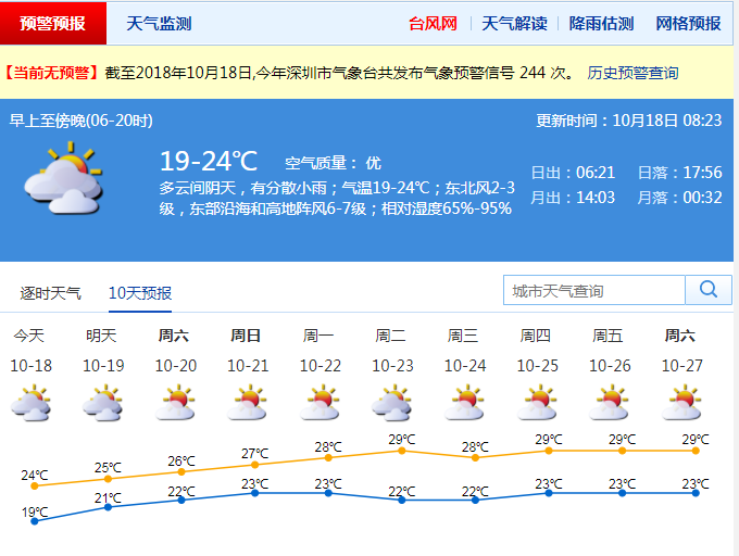 市內(nèi)吹2-3級東北風(fēng),沿海和高地偏東陣風(fēng)6-7級。大部分地區(qū)能見度較好,在8-15公里。雨時(shí)能見度較低,出行注意安全。最小相對濕度在80%左右,最大相對濕度在90%左右。