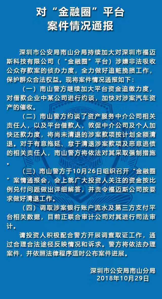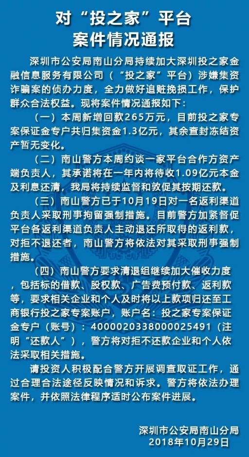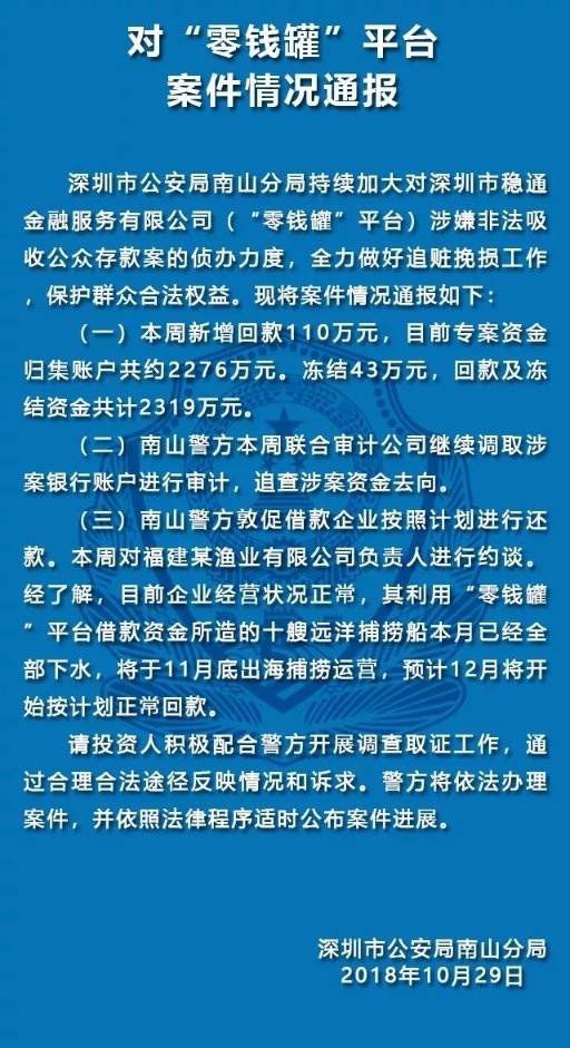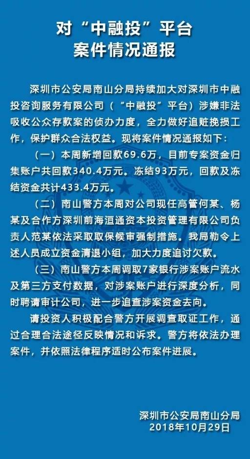 10月29日,深圳南山公安通報(bào)五家涉嫌非法集資犯罪的P2P平臺(tái)案件情況。五家平臺(tái)分別是“中融投”“投之家”“零錢罐”“利民網(wǎng)”“金融圈”平臺(tái)。