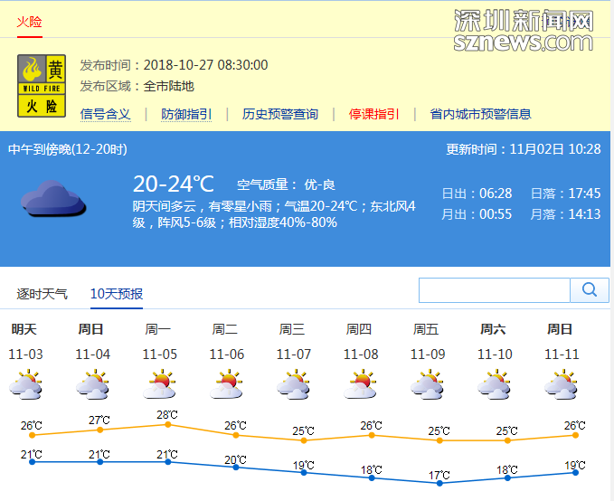 市氣象局發(fā)布未來(lái)十天天氣預(yù)報(bào)(數(shù)據(jù)更新于11月02日10時(shí)28分)