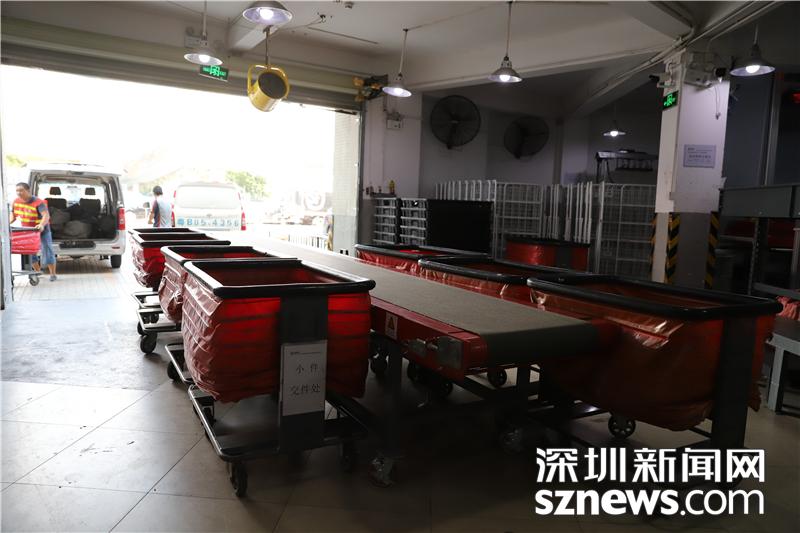 忙碌的田貝營運部內(nèi),順豐員工正在搬運包裹