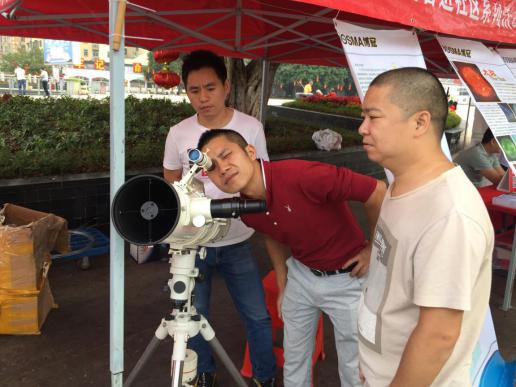 市民朋友在觀察天文望遠(yuǎn)鏡