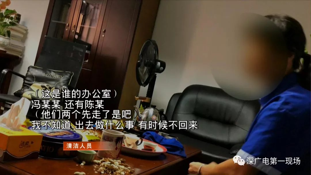 看到該單位工作作風(fēng)如此渙散,暗訪組成員繼續(xù)對(duì)另外一棟高層辦公樓展開(kāi)暗訪檢查。下午4點(diǎn)03分,暗訪組成員剛進(jìn)入二樓——深圳市生活垃圾處理監(jiān)管中心辦公區(qū)域,就聽(tīng)到有兩名男性工作人員招呼打掃衛(wèi)生的清潔人員幫忙整理辦公室,而這兩人背著包,徑直離開(kāi)辦公大樓。