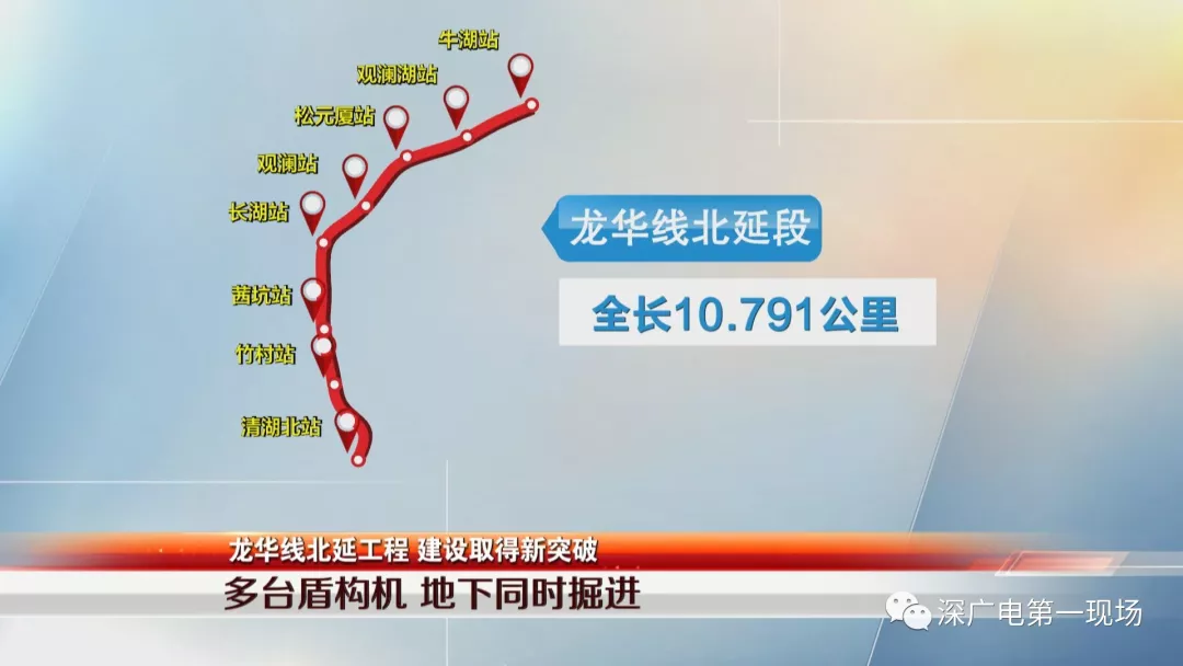 龍華線北延段工程線路,由目前龍華線終點站清湖站引出,由南至北依次沿和平路、觀瀾大道、高爾夫大道敷設(shè),沿途設(shè)有清湖北站、竹村站、茜坑站、觀瀾湖站、牛湖站等共8個車站,全長10.7公里,目前其他車站和區(qū)間的建設(shè)也在加緊推進(jìn)。