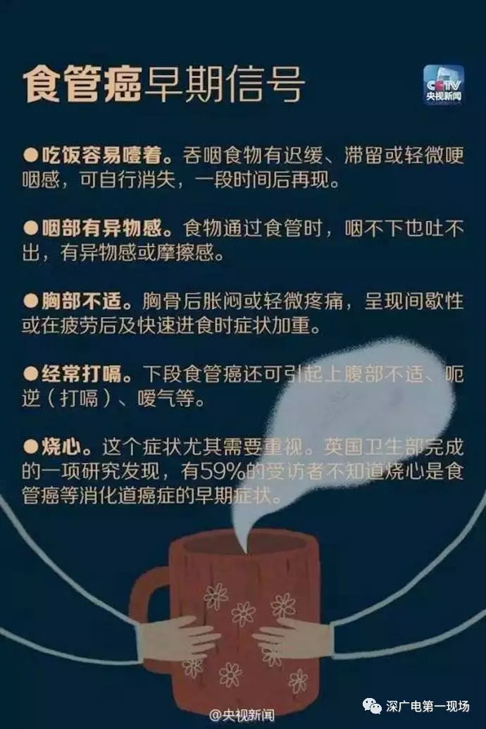 這個(gè)溫度既不會(huì)過度刺激食道、腸胃,也不容易造成血管收縮。所以,在進(jìn)食的時(shí)候,建議把溫度過高的食物、熱飲先放置一段時(shí)間。當(dāng)然了,食管癌也并不是不治之癥,關(guān)鍵在于早發(fā)現(xiàn)早治療。