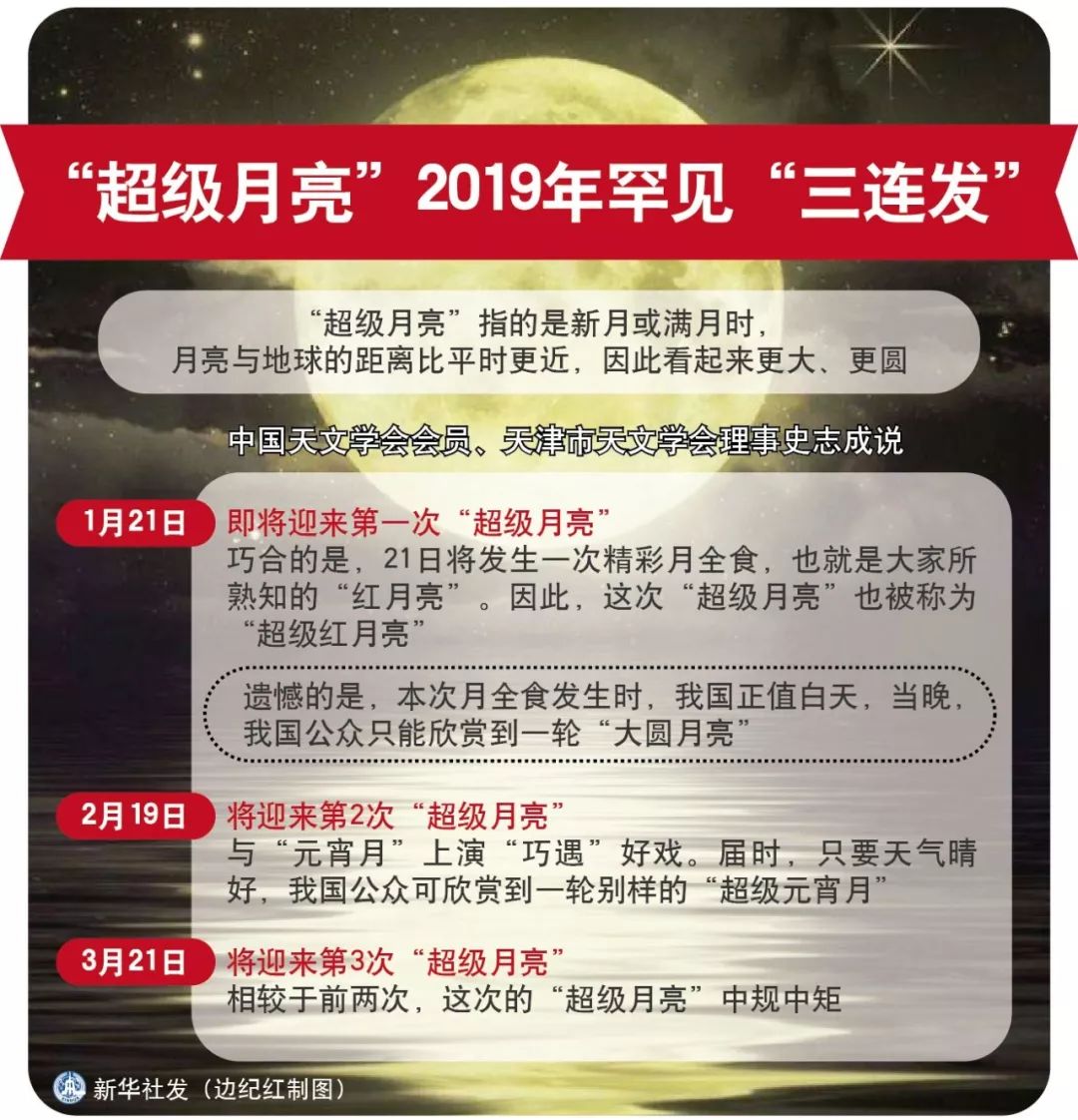 ④天文專家表示,“超級月亮”2019年會上演罕見“三連發(fā)”,時間分別是1月21日、2月19日和3月21日。在這3次當(dāng)中,第2次觀賞效果最佳。